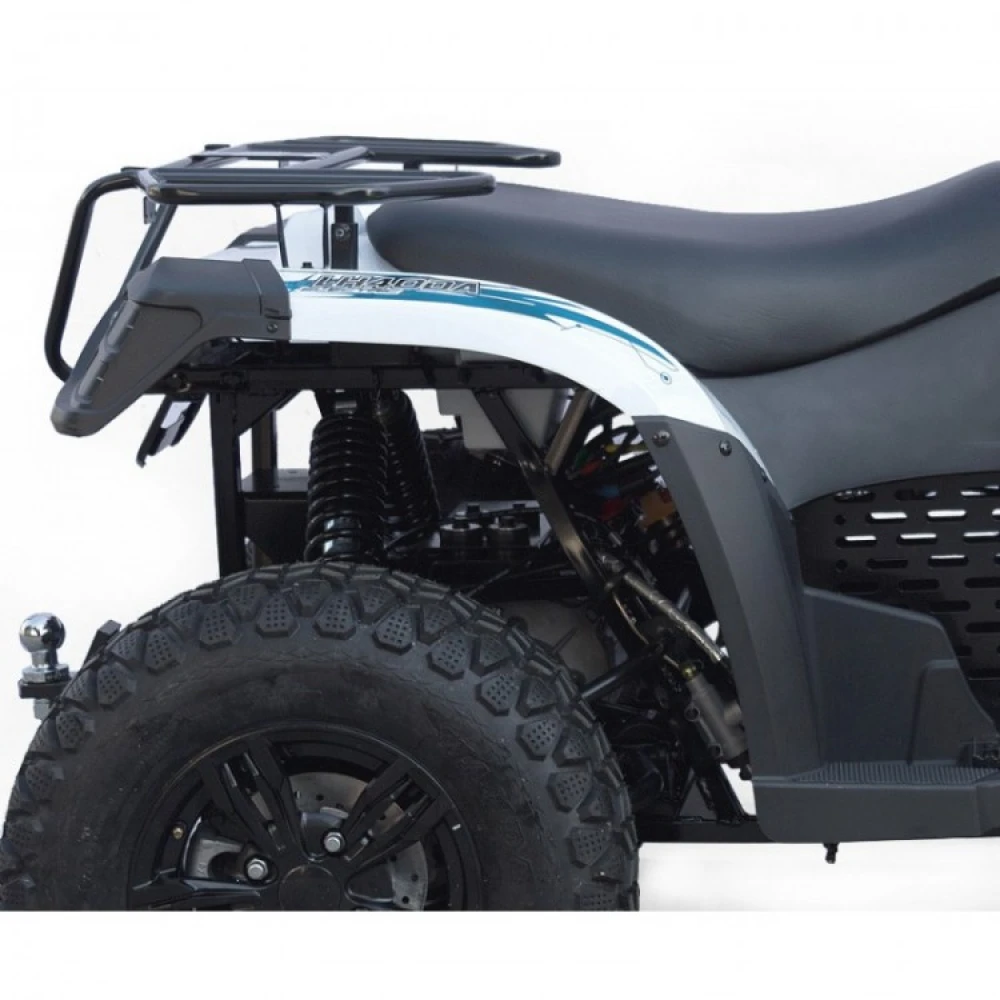 Колесная база модели составляет 1270 м для обеспечения повышенной проходимости модели. Для большей безопасности техника оснащена гидравлическими дисковыми передними и задними тормозами. Пробег на одном заряде до 60 км обеспечивают комбинированные аккумуляторы литиевого и гелевого типа. Пользователь легко разовьет скорость 50 км/час при мощности мотора 3900 Вт. (Обращаем внимание, в комплектацию с техникой батарея не входит).