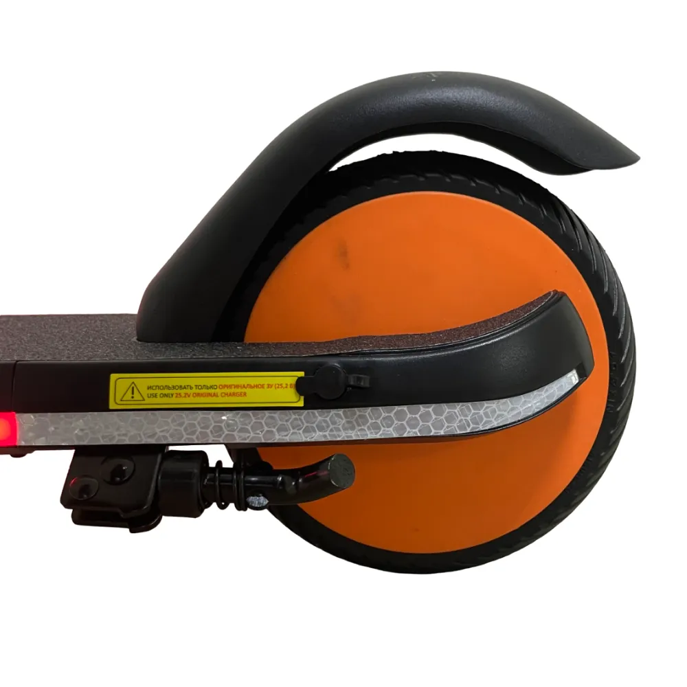 Электросамокат выполнен в лаконичных цветовых оттенках. На видимой части имеется светоотражающая полоса, делающая технику заметной в вечернее время. Модель предназначена для пользователей возрастной категории 6-12 лет. Технические характеристики (мощность двигателя – 100 Вт) допускает развитие скорости до 15 км/час. При необходимости райдер может пользоваться 1 из 3 скоростных режимов.