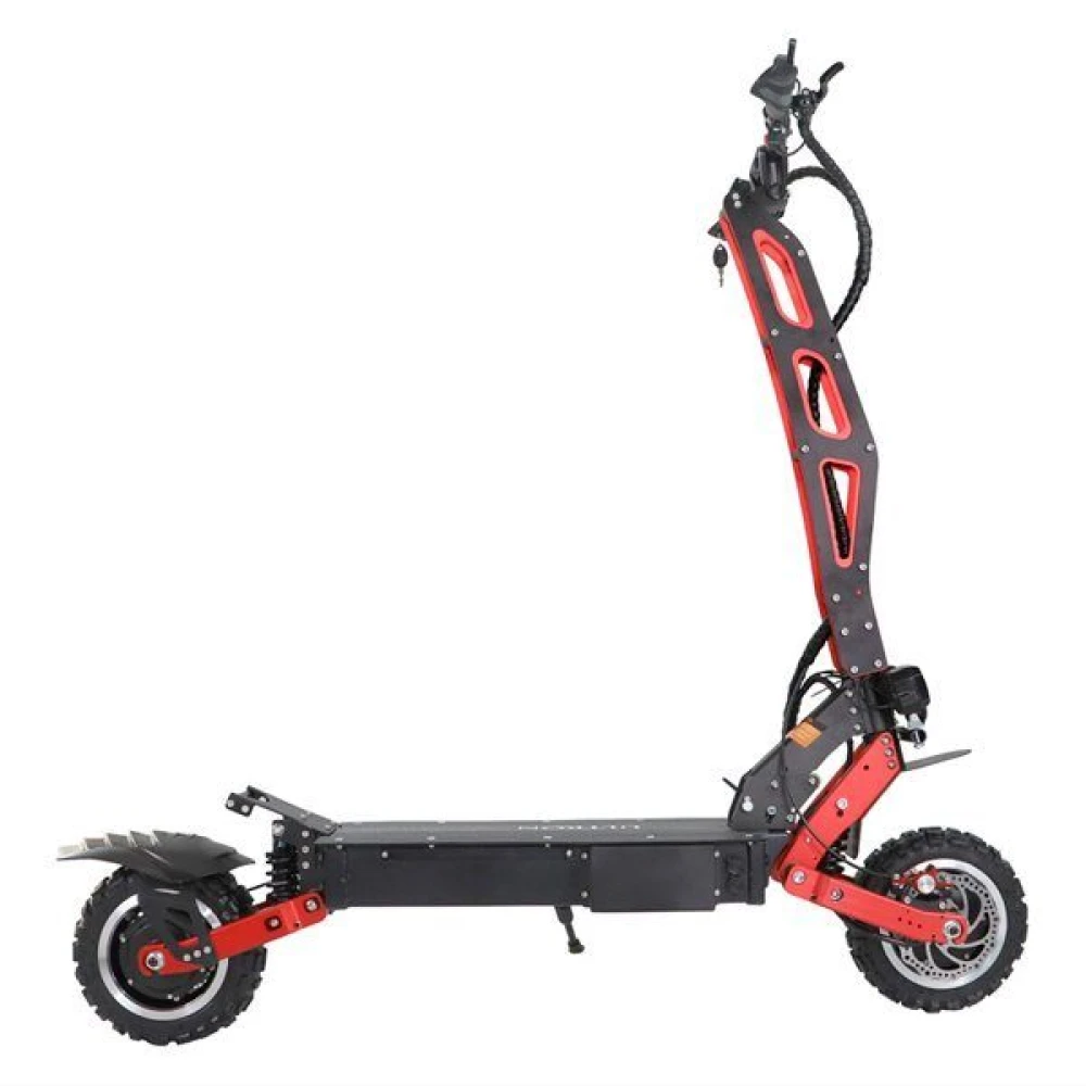 Причины, по которым стоит обратить внимание на эту модель, кроются в технические характеристиках и удобстве управления. Мощность электросамоката составляет 6000 Вт на 2 колеса. Максимальная скорость – 85 км/час, приличная для опытных райдеров. Дальность хода на одной подзарядке – до 95 км пути. Наличие амортизаторов, передней и задней гидравлической систем управления, 11-дюймовых устойчивых колес позволяет насладиться скоростными характеристиками без боязни упасть.