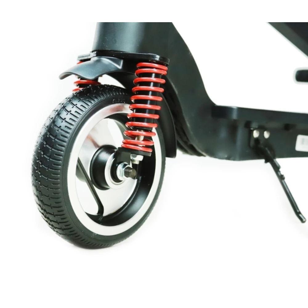Не дорогой и качественный городской электрический самокат со скоростью 25 км / ч, мощностью мотора 250 Вт, а тормоза на передних и задних колесах позволяют регулировать движение. В комплект входит литий-полимерный аккумулятор, который можно зарядить за 4 часа, а емкости в 5 А / час достаточно для автономной работы 17 километров. Колеса диаметром 8 дюймов.