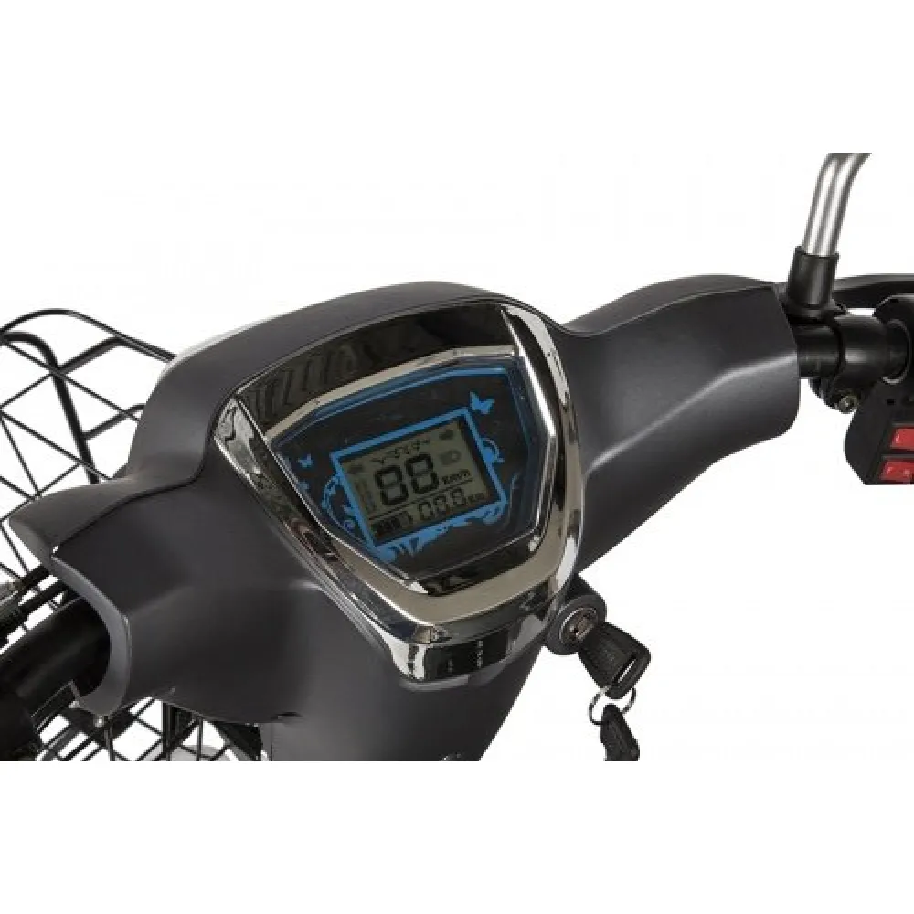 Приятное цветовое решение и совершенные формы заметно радует глаз райдера. Заряд батареи и основные показатели техники отображаются на современном ЖК-дисплее. Модель оснащена надежным двигателем мощностью 500 Вт. Улучшение характеристик техники позволяют развивать максимальную скорость 25-30 км/час. Для повышения комфорта поездок производитель оснастил тс дополнительным пассажирским сидением. Кресла имеют анатомически правильную форму и современное покрытие. Регулируемая рулевая стойка обеспечивает движение без дискомфорта.