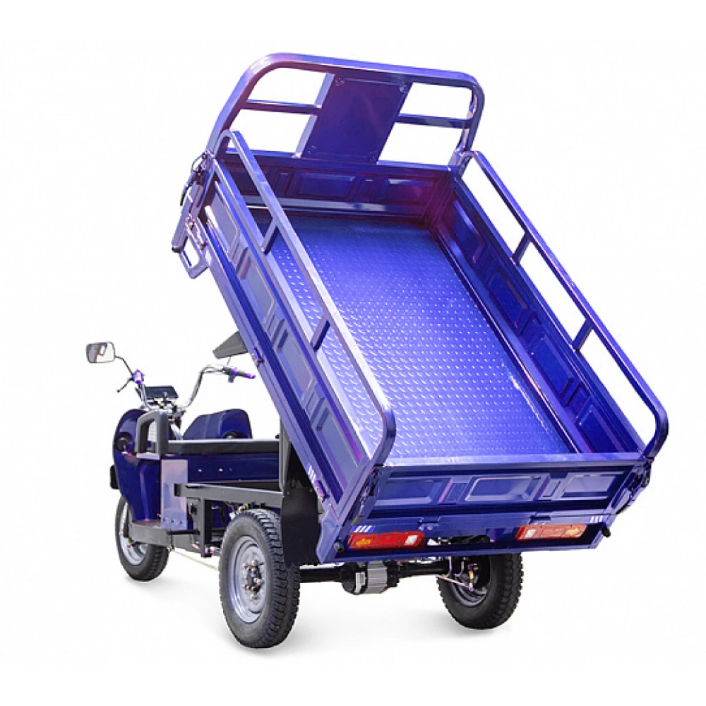 Мощность двигателя составляет 1500 Вт, в сочетании с гелевой тяговой батареей модель способна развивать скорость до 25 км/час и преодолевать 80 км пути. Модель оснащена вместительным кузовом, рассчитанным на грузоподъемность 1т. Управлять элеткротрициклом просто. Всесезонная техника оснащена зеркалом заднего вида, мощной светодиодной фарой, удобным комфортным сиденьем. При эксплуатации транспорта производитель предупреждает об осторожности нахождения под кузовом в поднятом состоянии. Фиксация кузова на предусмотрена в положении подъема.