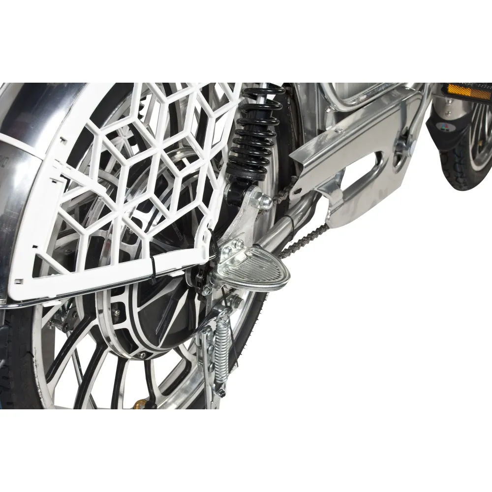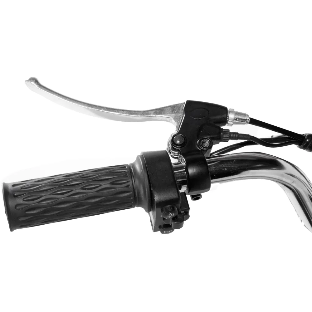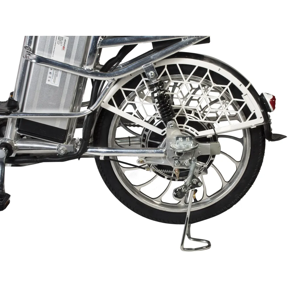 Электровелосипед смело можно отнести к технике с повышенной проходимостью, поскольку в рулевой стойке находятся усиленные амортизаторы, которые позволяют ездить по пересеченной местности и дорожным неровностям. Электродвигатель мощностью 500 Вт лихо разгоняют технику до максимальных показателей 50 км/час. А удобное сидение и возможность установки дополнительной батареи позволят насладиться длительными поездками.