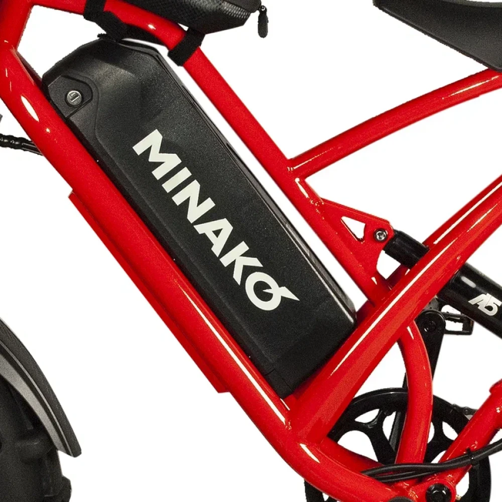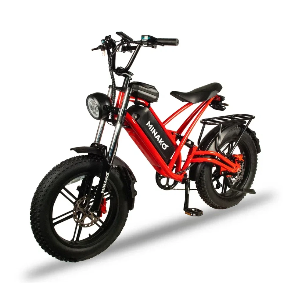 Электровелосипед Minako FOX (23Ah) - это сочетание прочности, стиля и технологий. Его красный цвет и литые диски привлекают взгляды, а максимальная скорость в 55 км/ч позволяет мчаться по дорогам с ветерком. Емкость батареи 23 Ah и мощность в 1000W обеспечивают пробег до 60 км на одном заряде. Дисковые гидравлические тормоза обеспечивают отличное торможение, а 20-дюймовые внедорожные покрышки позволяют уверенно чувствовать себя на любой поверхности. Дизайн велосипеда, напоминающий питбайк, подчеркивается мотоциклетной вилкой и большой фарой спереди. Сумка и багажник для пассажира добавляют практичности, а стоп-сигнал и амортизатор закрытого типа сзади - безопасности. Minako FOX - это не просто велосипед, это ваш новый стиль жизни.