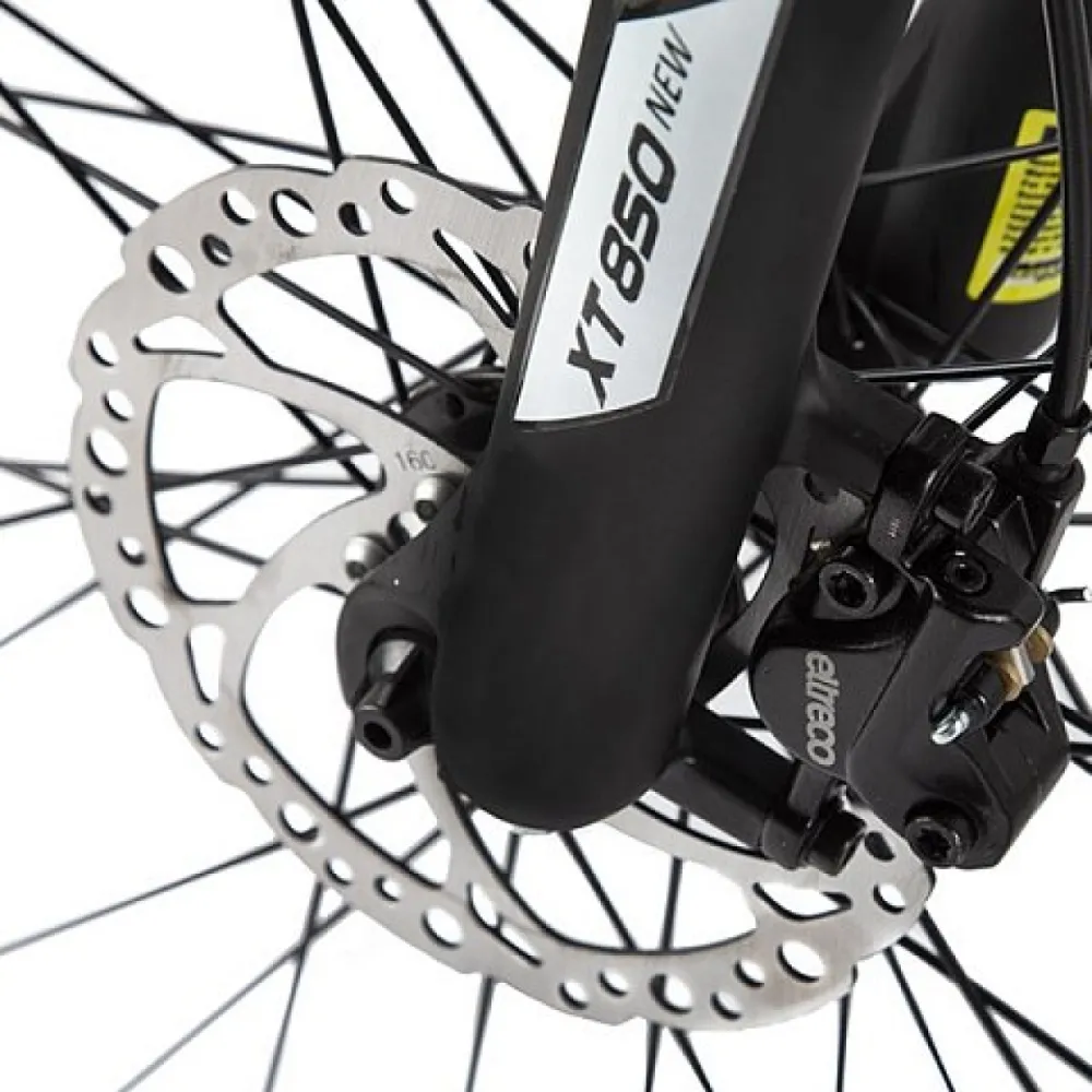 Установлены передние и задние гидравлические дисковые тормоза. На заднем колесе 7 звезд, семи-скоростной переключатель.