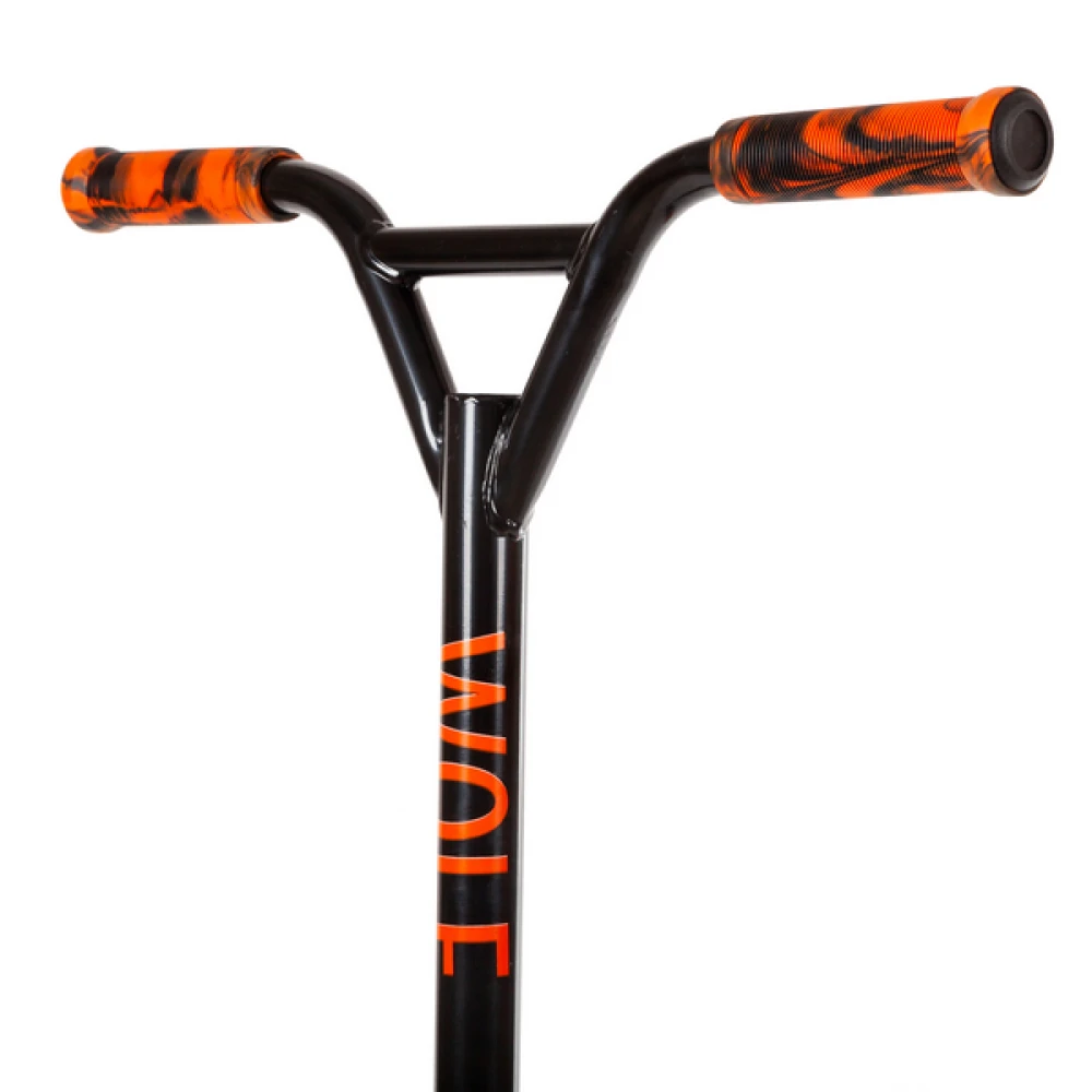 Трюковый самокат Novatrack WOLF EL черно-оранжевый — ваш идеальный компаньон для экстремальных приключений и впечатляющих трюков. Рассчитанный на максимальную нагрузку до 100 кг, этот самокат обеспечивает надежность и безопасность благодаря стальной вилке и классу подшипников ABEC-7. Дека длиной 48 см и шириной 9.5 см с прочным покрытием «шкурка» обеспечивает отличное сцепление и контроль. Резьбовая рулевая система и полиуретановые колеса диаметром 100 мм гарантируют плавное и устойчивое движение. Задний ножной тормоз обеспечивает мгновенную остановку, что особенно важно для райдеров от 8 лет и старше. Novatrack WOLF EL — воплощение стиля и надежности для смелых и активных!
