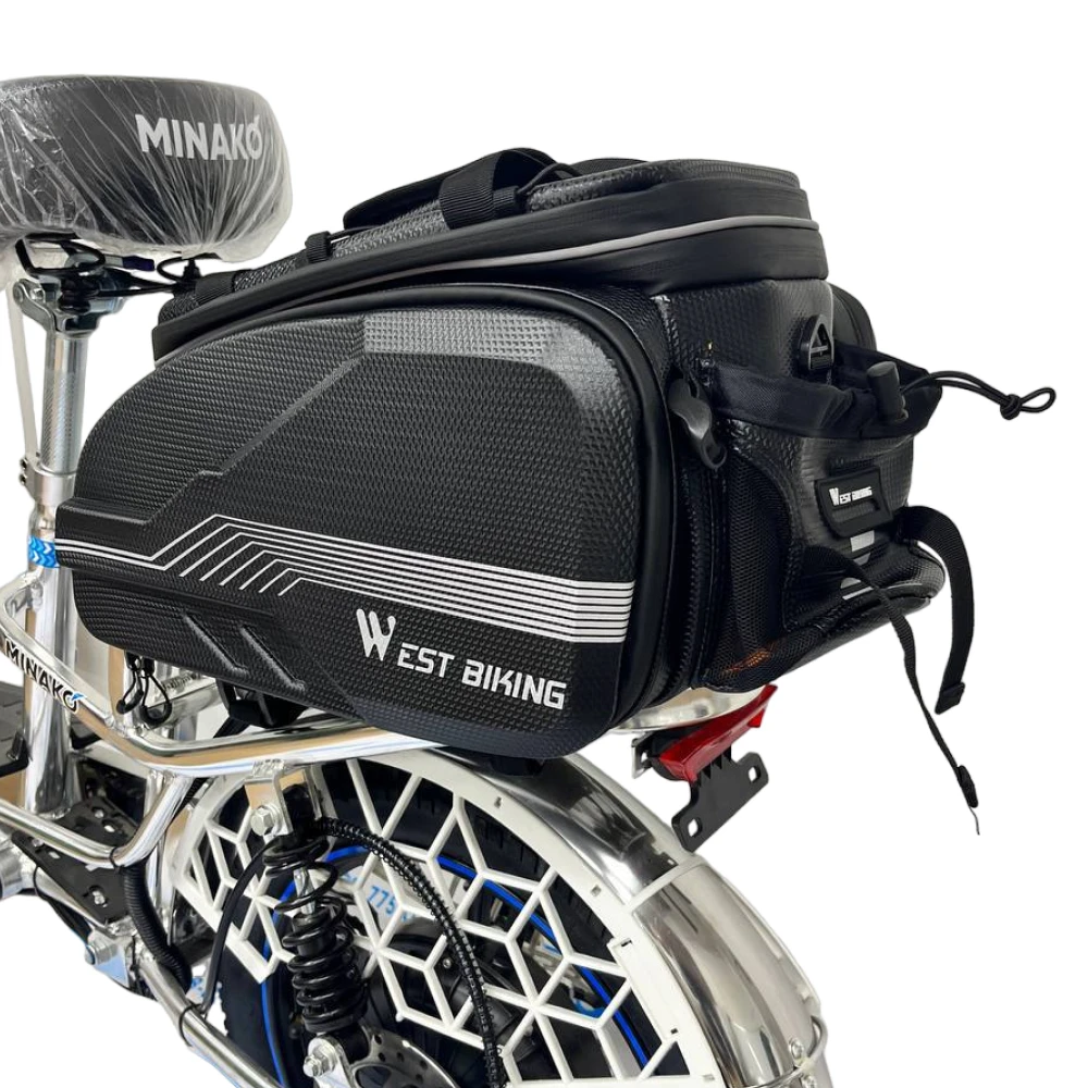 Велосумка West Biking на багажник Minako 25/45L - это не просто удобное и практичное решение для велосипедистов, но и стильный аксессуар. Ее эргономичный дизайн и компактные размеры делают эту сумку идеальной для любых поездок на велосипеде - от кратких прогулок до путешествий на дальние расстояния. Большое количество отсеков и карманов, которые предусмотрены внутри, позволяют легко и удобно хранить всю необходимую экипировку для катания на велосипеде. Прочный водонепроницаемый материал, из которого сделана эта сумка, обеспечивает максимальную защиту вещей во время езды в любых погодных условиях.